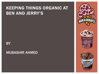 This document discusses Ben & Jerry's growth and organizational culture over time. It addresses the following key points: