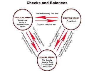 The document provides important dates in American history from 1607 to the 1860s, including the first English settlement at Jamestown in 1607, the Declaration of Independence in 1776, the writing of the Constitution in 1787, and the Civil War from 1861-1865. It also lists key figures from the American Revolution like George Washington, Thomas Jefferson, and Benjamin Franklin. The document further discusses principles of the US Constitution such as separation of powers, checks and balances, and federalism.