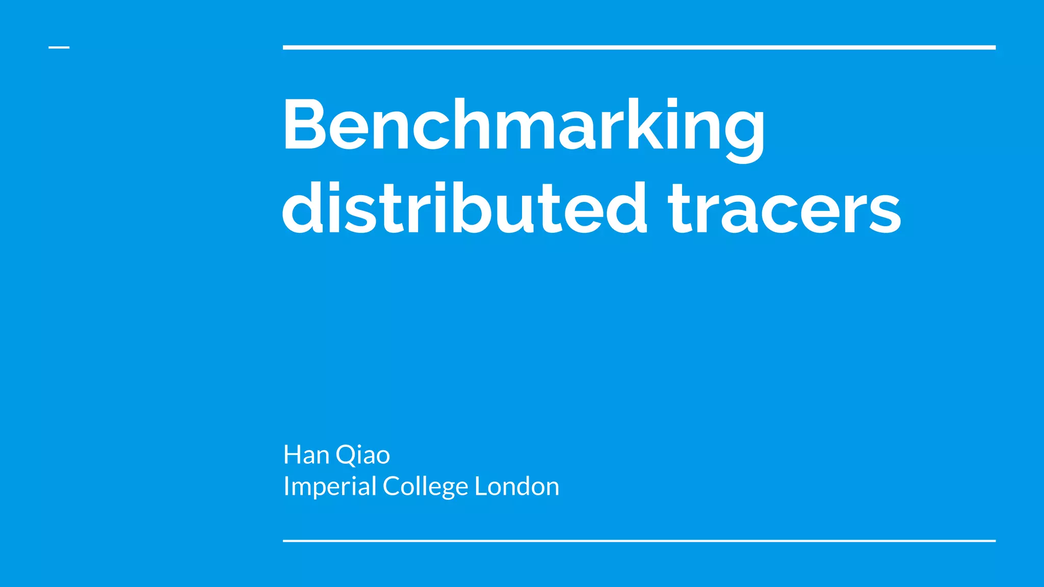 The document discusses benchmarking distributed tracers in the context of web request tracing and latency challenges faced in microservice architectures. It details the methodology for measuring instrumentation overhead and compares different tracers (Spring Cloud Sleuth, Jaeger, Minke) with varying numbers of tracepoints in performance metrics. The results indicate that the choice of tracer and configuration significantly impacts latency and throughput, with specific conditions noted for load balanced and fan-out services.