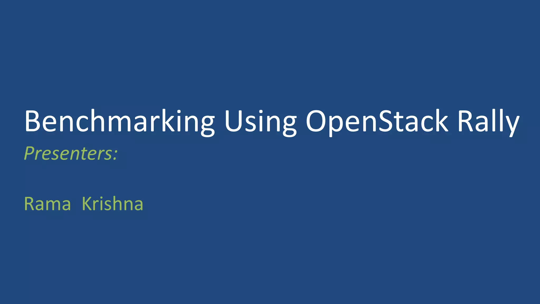 OpenStack Rally is an open-source project for benchmarking and profiling OpenStack deployments, launched in 2013. It automates multi-node OpenStack deployment and includes key services for benchmarking, verification, and reporting. The document provides installation instructions, use cases, and details on how to run benchmarks and configure Rally with existing OpenStack environments.