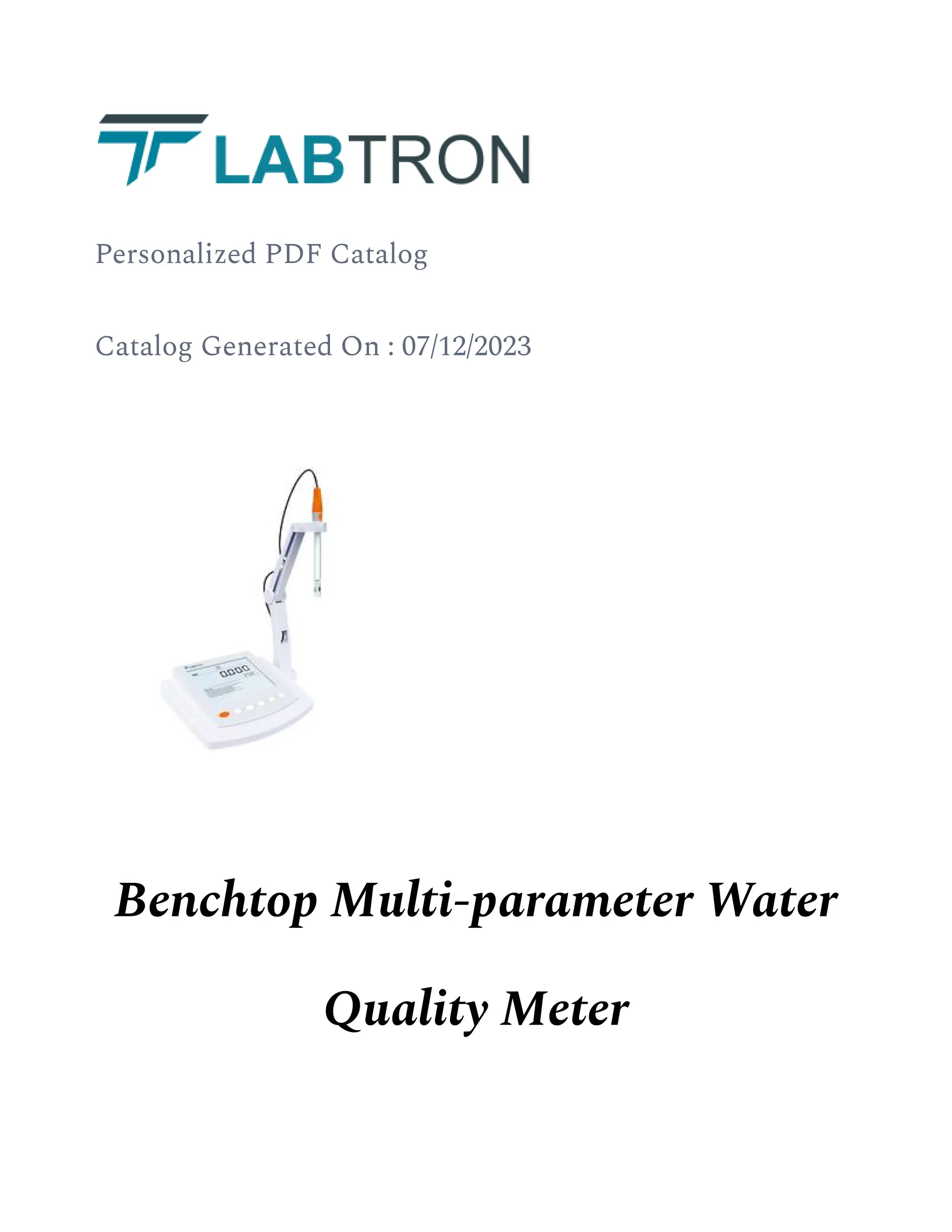 The document provides detailed information on a benchtop multi-parameter water quality meter that measures pH, conductivity, and TDS content, storing up to 500 data sets. It features automatic temperature compensation, calibration reminders, and various calibration modes for accurate measurements. Suitable for use in research, QC labs, and water management, the meter is designed for comprehensive water quality testing.