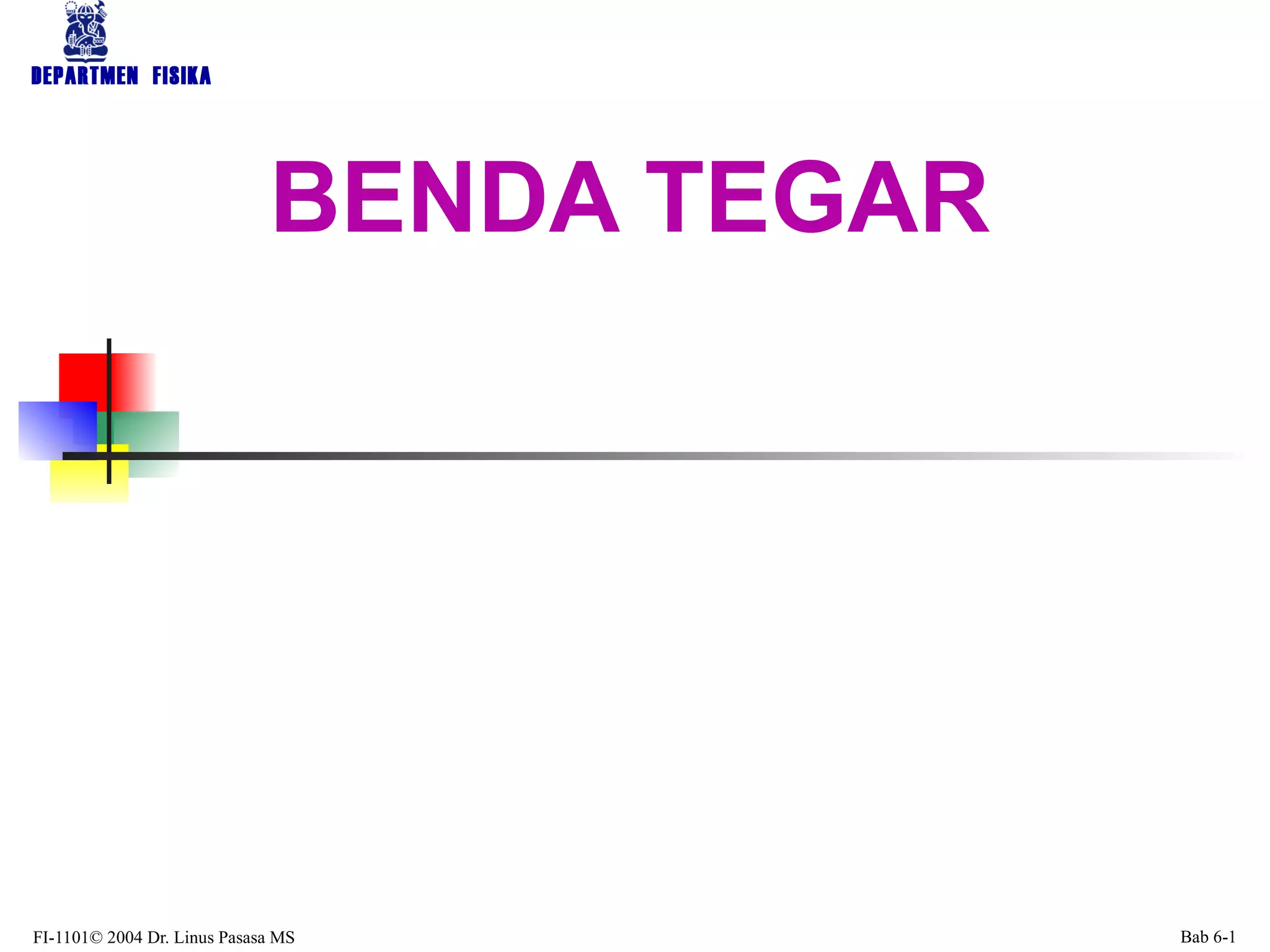 Dokumen tersebut membahas tentang konsep-konsep dasar gerak rotasi dan besaran-besaran vektor yang terkait dengan gerak rotasi seperti kecepatan sudut, percepatan sudut, momentum sudut, dan momen inersia. Dokumen tersebut juga membahas hukum-hukum dasar mekanika gerak rotasi seperti hukum kekekalan momentum sudut dan analoginya dengan hukum kekekalan momentum linear untuk gerak translasi.