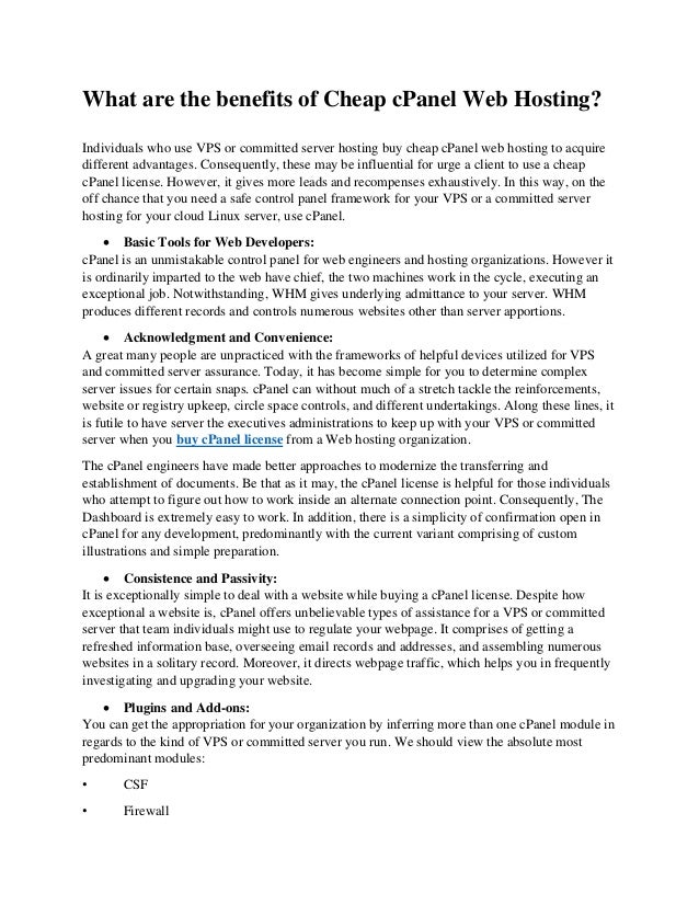 Cheap cPanel web hosting offers various benefits for users of VPS or dedicated servers, such as basic tools for web developers and ease of use for managing complex server issues. It simplifies website management through an intuitive dashboard and provides plugins for enhanced functionality. Additionally, purchasing a cPanel license from a reputable provider like Navicosoft ensures security and reliability in server operations.