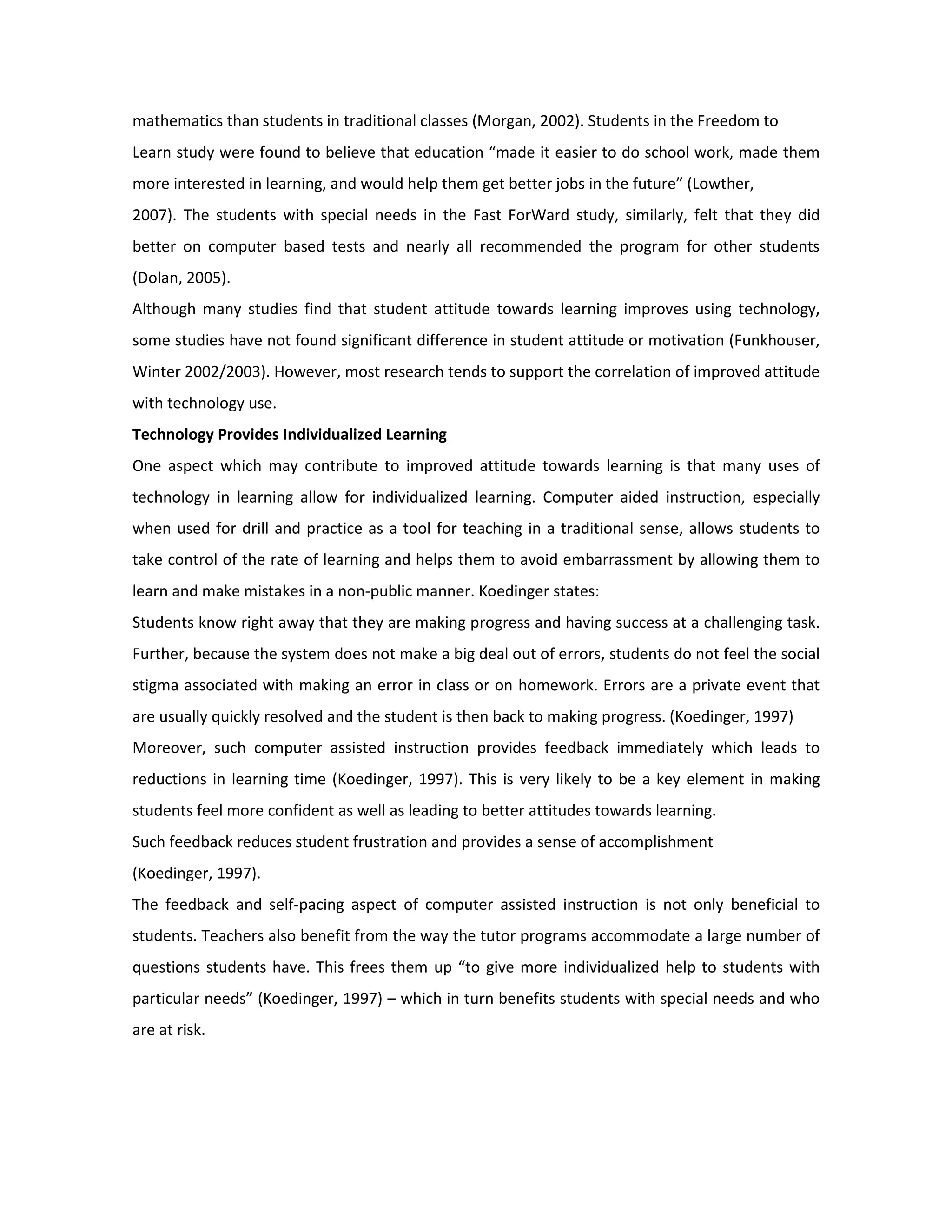 2) Students with special needs like dyslexia have shown significant improvements in reading ability and test scores when using computer programs.