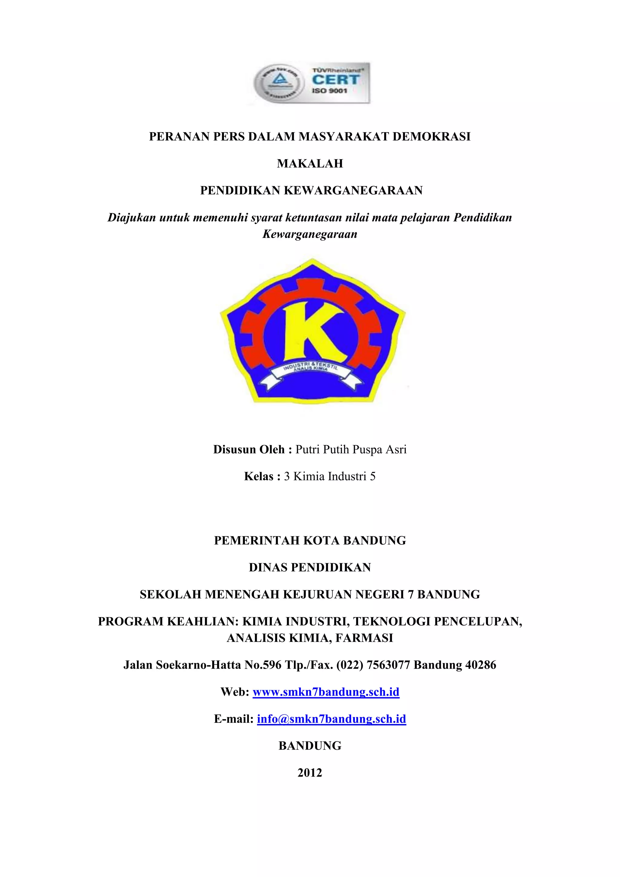 Dokumen ini membahas peranan pers dalam masyarakat demokrasi, menjelaskan bahwa pers memiliki fungsi penting sebagai kontrol sosial dan penggerak inisiatif masyarakat. Selain itu, dokumen ini menjelaskan sistem pers di berbagai negara, termasuk kebebasan dan batasan yang dihadapi, serta sifat dan tanggung jawab pers dalam menjalankan fungsinya. Penulis juga menggarisbawahi pentingnya pers dalam meningkatkan kesejahteraan dan kesadaran masyarakat di era globalisasi.