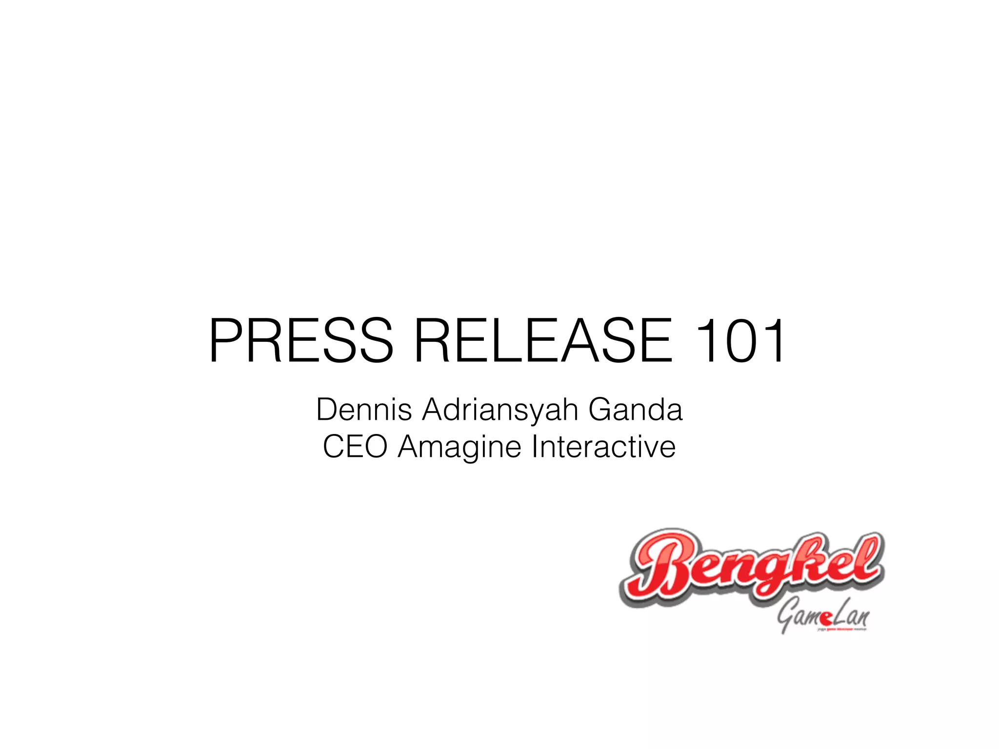 This press release document provides guidance on using press releases to promote mobile games. It explains that press releases can help promote games since app store competition is intense and paid advertising requires money. The document then offers tips for preparing an effective press release, including having a quality game, targeting local media, including key details about the game, and building a press contact database. It emphasizes focusing press releases on local media outlets and providing personal, persuasive introductory emails without being pushy. The goal is to potentially get the game reviewed and increase downloads, then continuing to update the game and learn from both successes and failures.