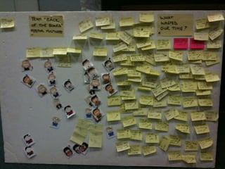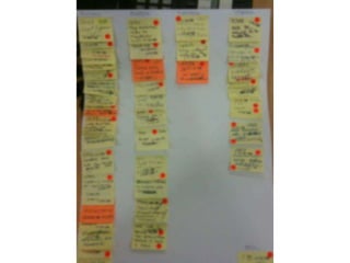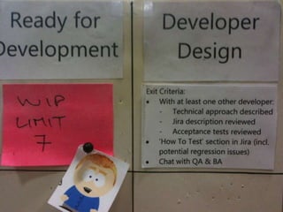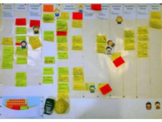 The document discusses using Kanban to continuously improve processes through knowledge gain. It recommends thinking about one's own context, studying processes as customer-focused systems, and only applying tools like Kanban if they fit the context. The Deming cycle of plan-do-check-act is referenced. Key aspects to focus on include purpose, measures, method, system conditions like flow and demand, and capability of response. The goal is to improve performance through changing thinking and running experiments to learn while working in a way that encourages reconsidering approaches, or "doing the right thing, righter."