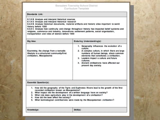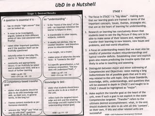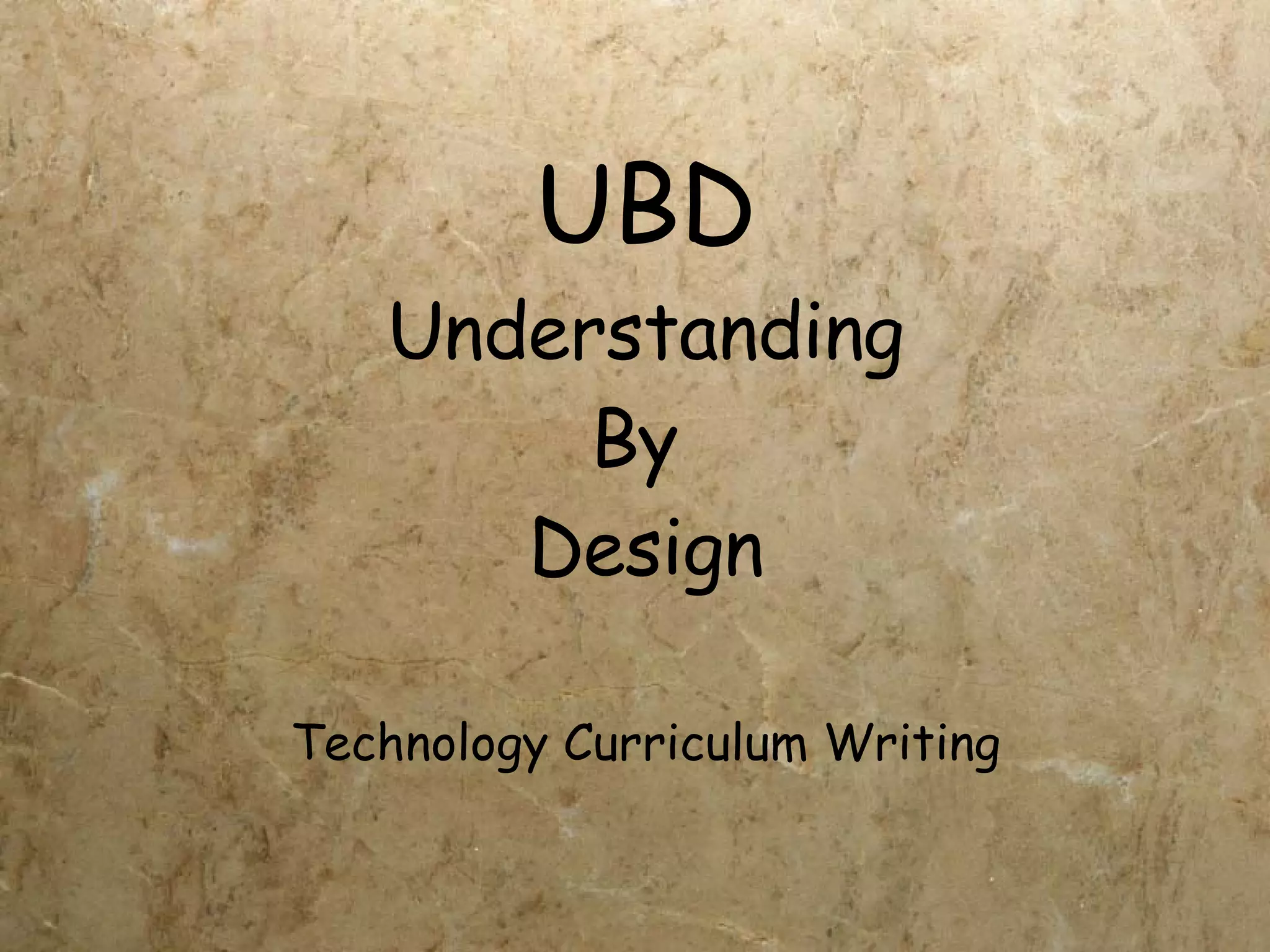 This document outlines the three stages of the Understanding by Design (UBD) framework for developing technology curriculum. Stage 1 is identifying desired results including enduring understandings, essential questions, and potential student misunderstandings. Stage 2 focuses on assessment evidence including performance tasks and how students will reflect. Stage 3 involves planning the learning including an engaging hook, equipping students, experiences to explore the content, and opportunities to rethink and revise understanding.