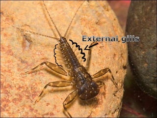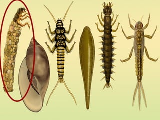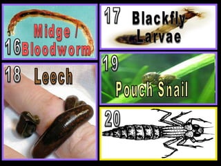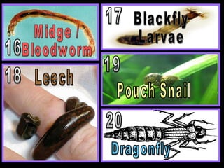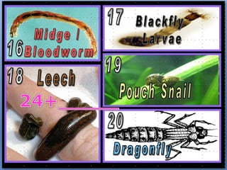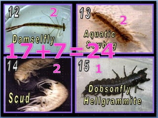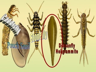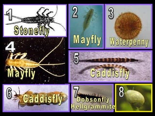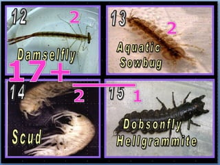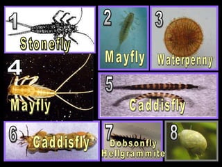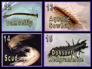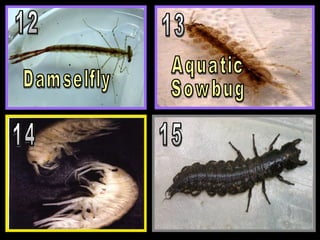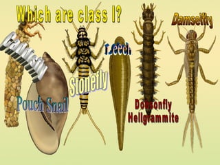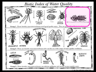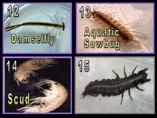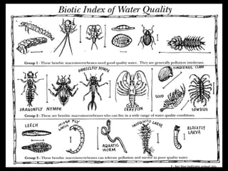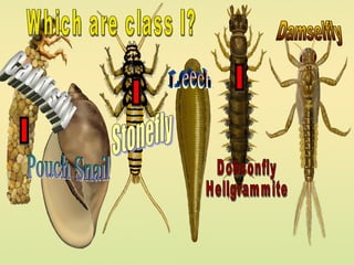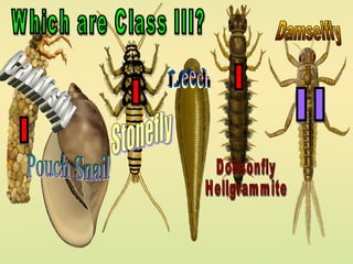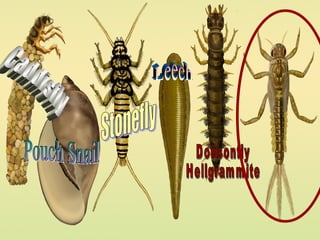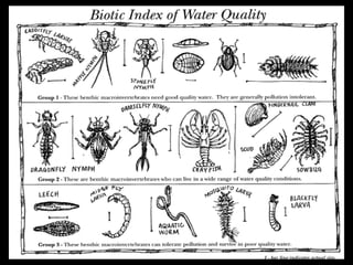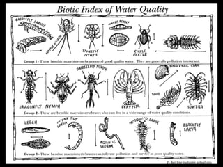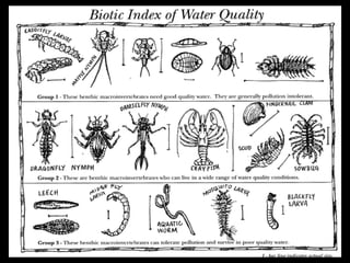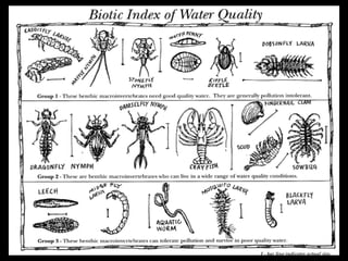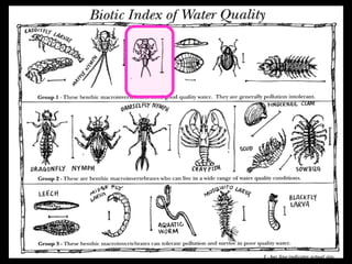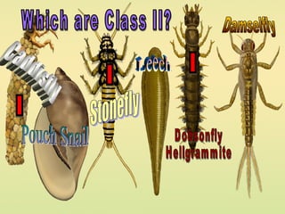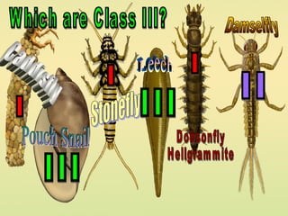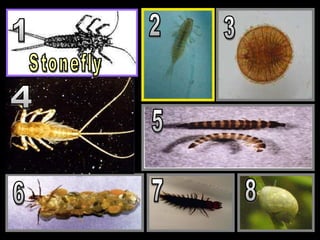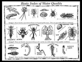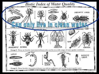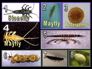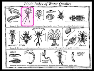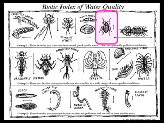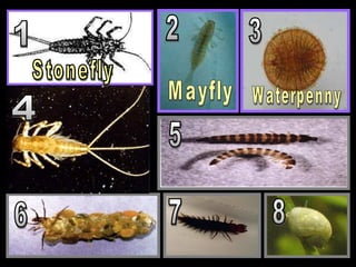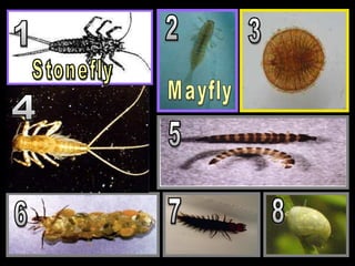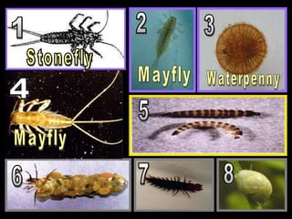 The document provides educational notes regarding benthic macroinvertebrates, including their characteristics and habitat requirements, with emphasis on those that thrive in unpolluted waters. It includes activities and quizzes to engage students in identifying various aquatic organisms, such as mayflies, stoneflies, and caddisflies. Visuals, links, and instructions for recording observations in science journals are also included to enhance learning.