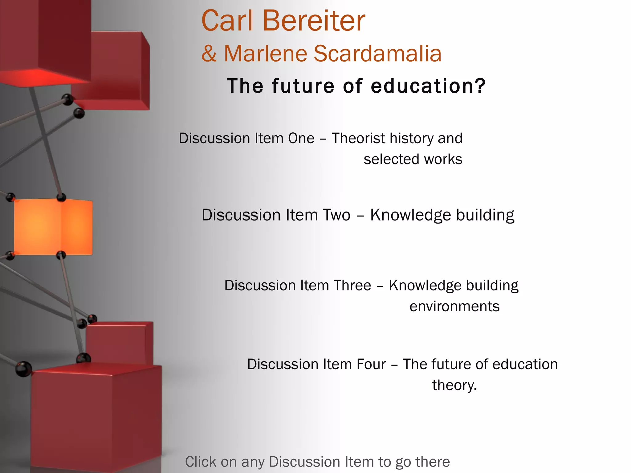 Carl Bereiter is a professor emeritus at the University of Toronto who co-founded the Institute for Knowledge Innovation & Technology. He developed CSILE, the first networked system for collaborative learning, and later Knowledge Forum. Knowledge building environments aim to treat students as members of a knowledge building community rather than just learners. They emphasize knowledge advancement for the community rather than individual achievement and focus on improving ideas rather than acquiring knowledge. Discourse is collaborative problem solving rather than argumentation, and emergent understandings are valued over authoritative knowledge.