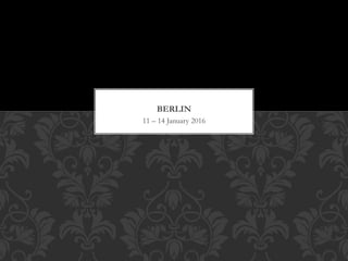 The document provides a date range of 11-14 January 2016 and a location of Berlin, Germany. It appears to list an event occurring over those 4 days in the city of Berlin but does not provide any other context or details about the nature of the event.