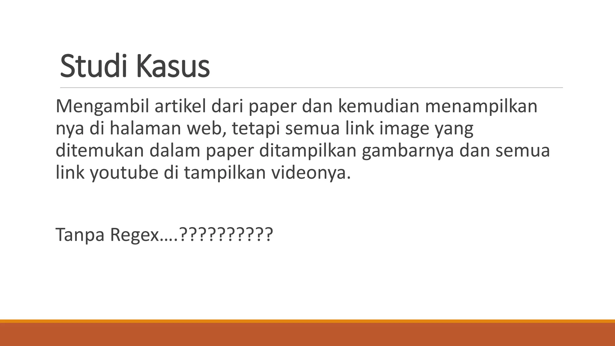 Dokumen ini menjelaskan tentang penggunaan regular expressions (regex) untuk mencocokkan pola dalam string teks, termasuk cara kerja wildcard, karakter meta, serta contoh-contoh penerapan dalam pencarian dan penggantian. Regex memiliki beberapa karakter dasar dengan fungsi spesifik, seperti pemilihan, pengelompokan, set karakter, dan quantifier yang memperluas kemampuannya untuk mencocokkan pola. Selain itu, dokumen ini juga menjelaskan peran karakter escape untuk mencocokkan karakter meta sebagai literal.