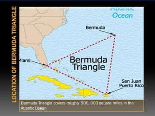 The Bermuda Triangle, often referred to as the Devil's Triangle, is an area in the Atlantic Ocean where numerous ships and aircraft have mysteriously disappeared since it was named in 1964. These disappearances may be related to navigational challenges posed by the region's magnetic anomalies, where magnetic north aligns with true north. Despite extensive studies, the Bermuda Triangle has not revealed any significant unusual magnetic disturbances.