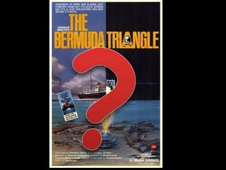 The document discusses the Bermuda Triangle, a region where a number of ships and planes have disappeared under mysterious circumstances. It provides background on the triangle's location and some notable incidents, such as the disappearance of Flight 19 in 1945. Both supernatural and scientific explanations for the phenomena are presented, with scientific explanations including compass variations, the Gulf Stream, human error, hurricanes, and rogue waves. The document concludes that the Bermuda Triangle remains a mystery that has yet to be fully explained.