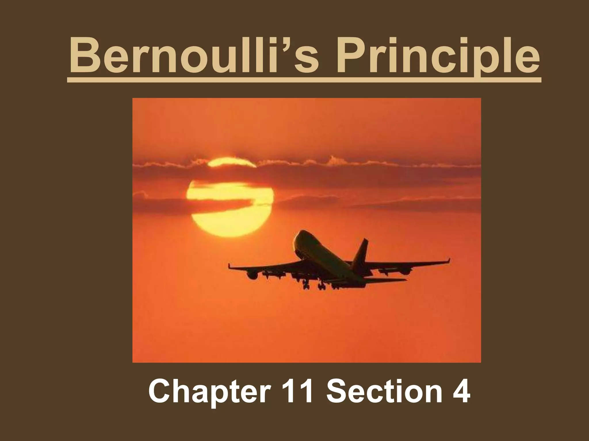 Bernoulli's principle states that fluids flow from high pressure to low pressure. When drinking from a straw, the higher air pressure pushing down on the surface of the drink forces the fluid up the straw where the pressure is lower. The principle also explains that as the speed of a fluid increases, the pressure exerted by that fluid decreases, so faster moving air above an object exerts less pressure and allows the object to be pushed up, while faster air below exerts greater pressure and pushes the object down.