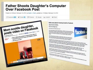 This document discusses the use of technology and social media in education from the perspective of a teacher. It provides advice on using social media platforms like Twitter, Facebook, and Google Drive in a classroom. While acknowledging concerns about social media, it argues teachers should educate students on appropriate use rather than banning these tools. The teacher's vision is for project-based group work and guiding students to communicate positively online.