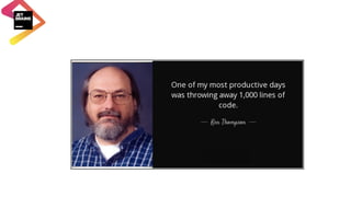 The document outlines best coding practices, emphasizing that there is no single best programming language, and discusses various IDEs for different languages. It covers key principles for variable and method naming, function design, and effective use of comments, stressing the importance of writing clean and maintainable code. Additionally, it mentions the significance of software design patterns in enhancing code quality and minimizing potential issues.
