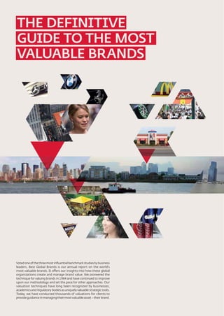 This document provides an overview of Interbrand's annual Best Global Brands report. It discusses how brands are facing a new paradigm in brand management due to changes in consumer behavior and expectations in the digital age. Customers now have more information at their fingertips and can publicly share their feedback, positive or negative, about brands in real time. The document argues that in this new landscape, brands must focus on building trust and loyalty by engaging with customers transparently and responding to their needs. It provides examples of how Coca-Cola, Ford, and Santander have adapted successfully to these challenges.