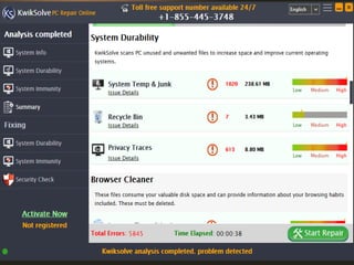 The document outlines common reasons for PC slowdowns, including unwanted registry entries, unrequired files, and outdated browser add-ons. It provides actionable steps to enhance system speed without wiping data, such as malware scanning, defragmenting the hard drive, and cleaning temporary files. Additionally, it discusses the benefits of using a PC cleaner, recommendations for selecting one, and promotes the Kwiksolve software for improving PC performance.
