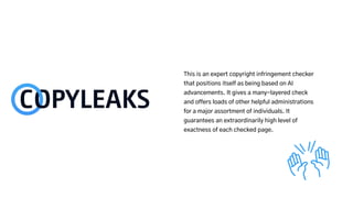 The document reviews various plagiarism checkers, highlighting their features and advantages. It specifically mentions the capabilities of services like AcademicAssignments, Plagiarisma, and Grammarly, which offer tools for checking copyright infringement and grammar errors. The text emphasizes the effectiveness and user-friendliness of these platforms for students and educators.