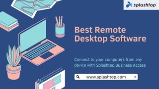 Splashtop Business Access offers remote desktop software that allows users to access their computers from any location, enhancing productivity and collaboration. It provides robust security features, supports disaster recovery, and simplifies technical support processes. The software enables centralized management of multiple remote sessions, making it a powerful tool for both individuals and businesses.