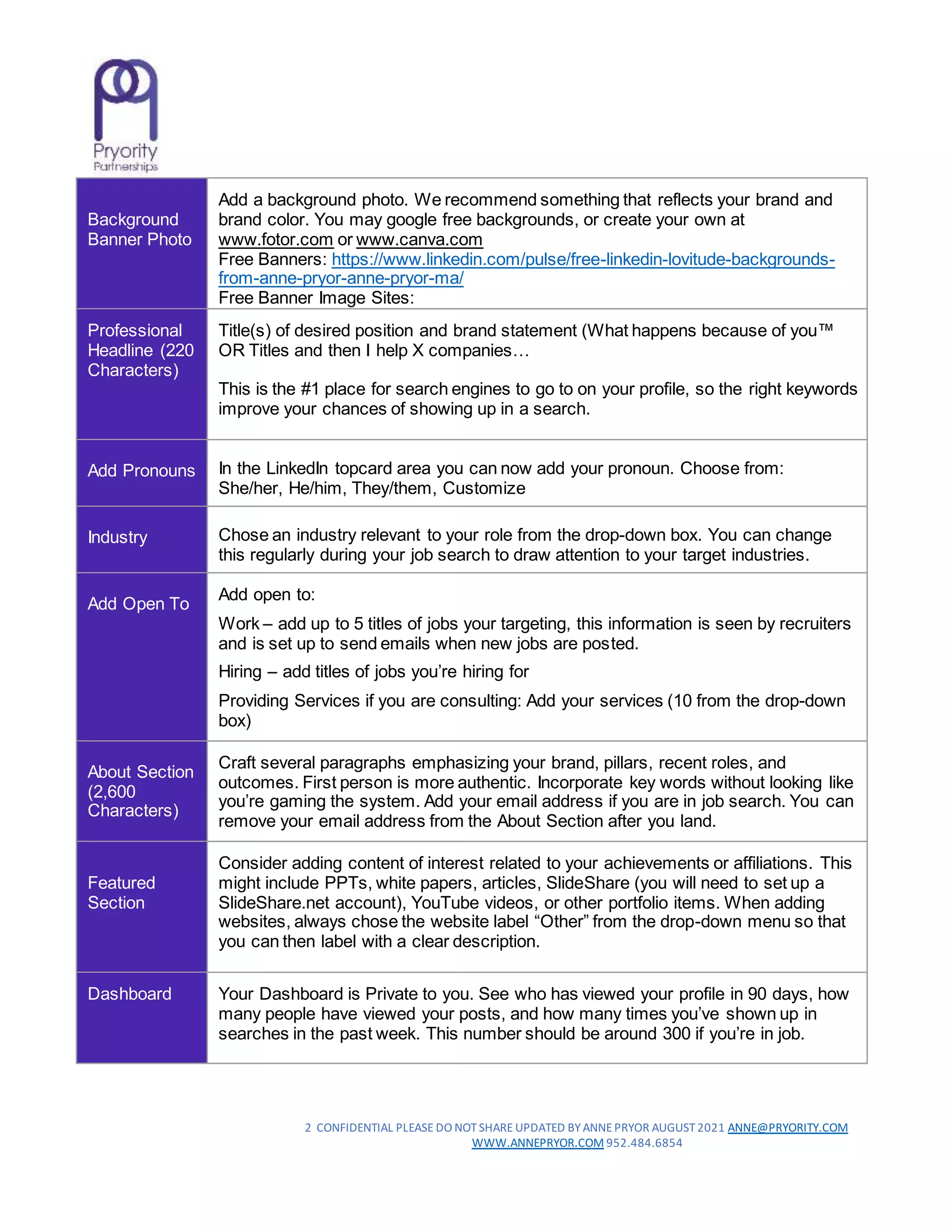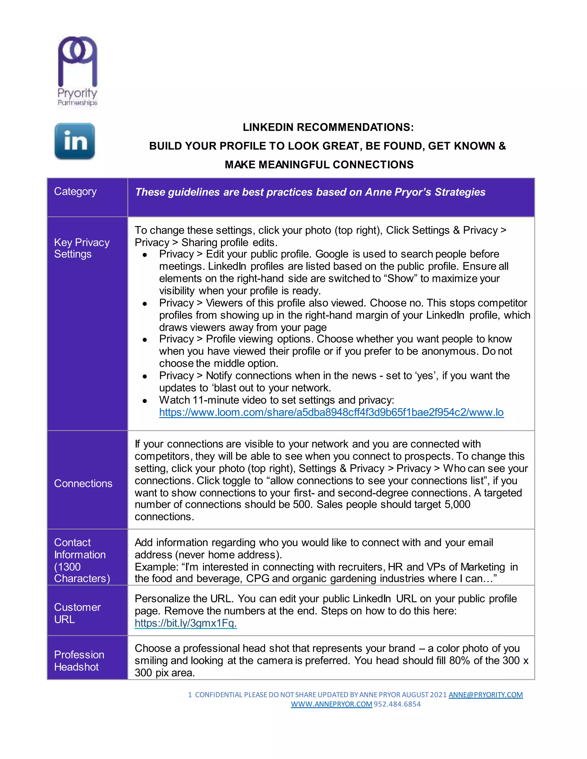The document provides best practices for optimizing a LinkedIn profile, including key privacy settings, personal branding tips, and strategies for enhancing visibility to recruiters. It advises on profile components such as professional headshots, background banners, and targeted keywords, as well as networking and endorsing skills. Additionally, it emphasizes the importance of personal connections and following relevant industry influencers and groups.
