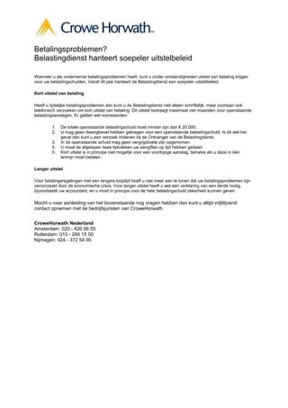 telefonisch verzoeken om kort uitstel van betaling. Dit uitstel bedraagt maximaal vier maanden voor openstaande