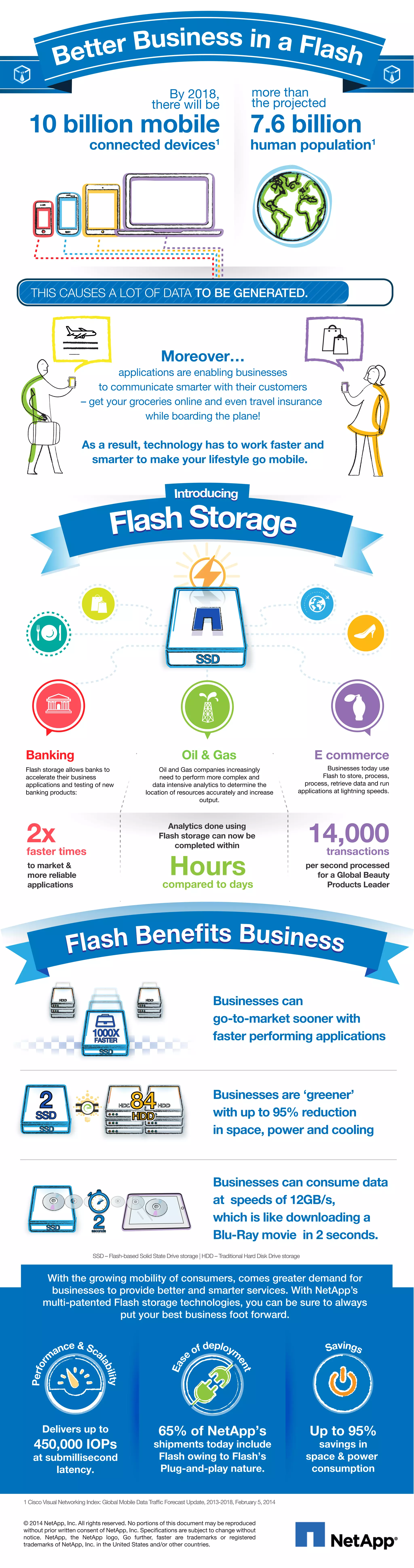 The document discusses how businesses are using flash storage technologies to improve operations and customer services in an increasingly data-driven world. Flash storage allows for faster processing and retrieval of large amounts of data, enabling businesses to gain insights and get products to market quicker. It can also reduce costs through lower power consumption and space usage compared to traditional storage solutions. As data volumes continue growing exponentially, flash storage helps businesses work smarter with data and stay competitive.