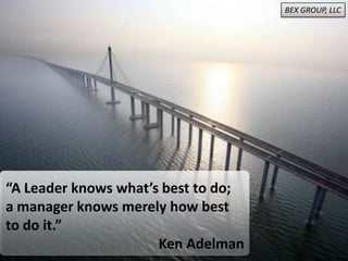 This document contains several quotes related to leadership, success, and work ethic. A quote by Ken Adelman distinguishes between a leader who knows what is best and a manager who knows how to implement it. Albert Einstein's quote about mediocre minds opposing great spirits also emphasizes the importance of visionary leadership. A quote by LaoTzu describes the ideal leader as one who guides without taking credit.