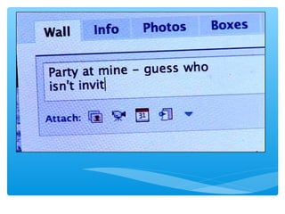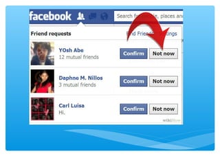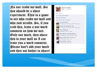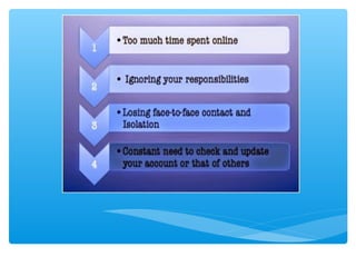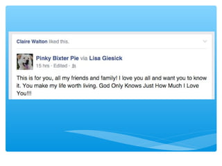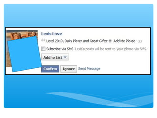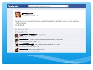 The document provides statistics and features related to Facebook, noting significant user engagement such as 7,246 new users every 15 minutes and 150,000 messages sent per minute. It highlights Facebook's financial success, generating substantial revenue from mobile advertising, with a market capitalization reaching $250 billion in 2015. Additionally, it discusses the platform's features, privacy concerns, and the impact of social media on identity and interpersonal communication.