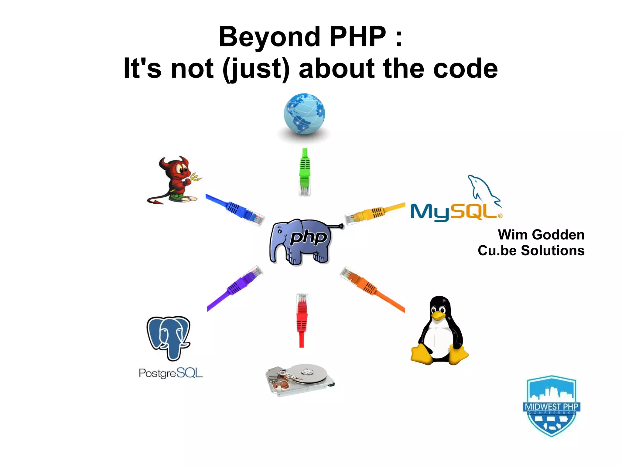 Wim Godden discusses the complexities of PHP development and database management, highlighting common mistakes made by developers regarding database queries and indexing. He emphasizes the importance of understanding relational schema and query optimization to improve performance, especially in high-traffic applications. The document also provides case studies illustrating the impact of poor coding practices on database performance and offers solutions for optimization.