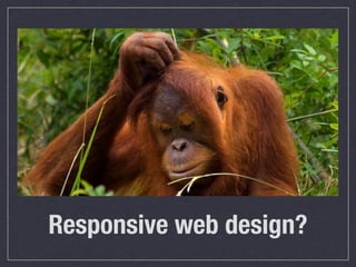 The document discusses the principles and components of responsive web design, emphasizing the need for flexible grids, images, and media queries to create an adaptable web experience across various devices. It highlights the limitations of relying solely on media queries and advocates for a mobile-first approach to web development, prioritizing user experience on mobile devices. Additionally, it presents statistical insights into global internet access and mobile usage, illustrating the importance of designing with mobile users in mind.