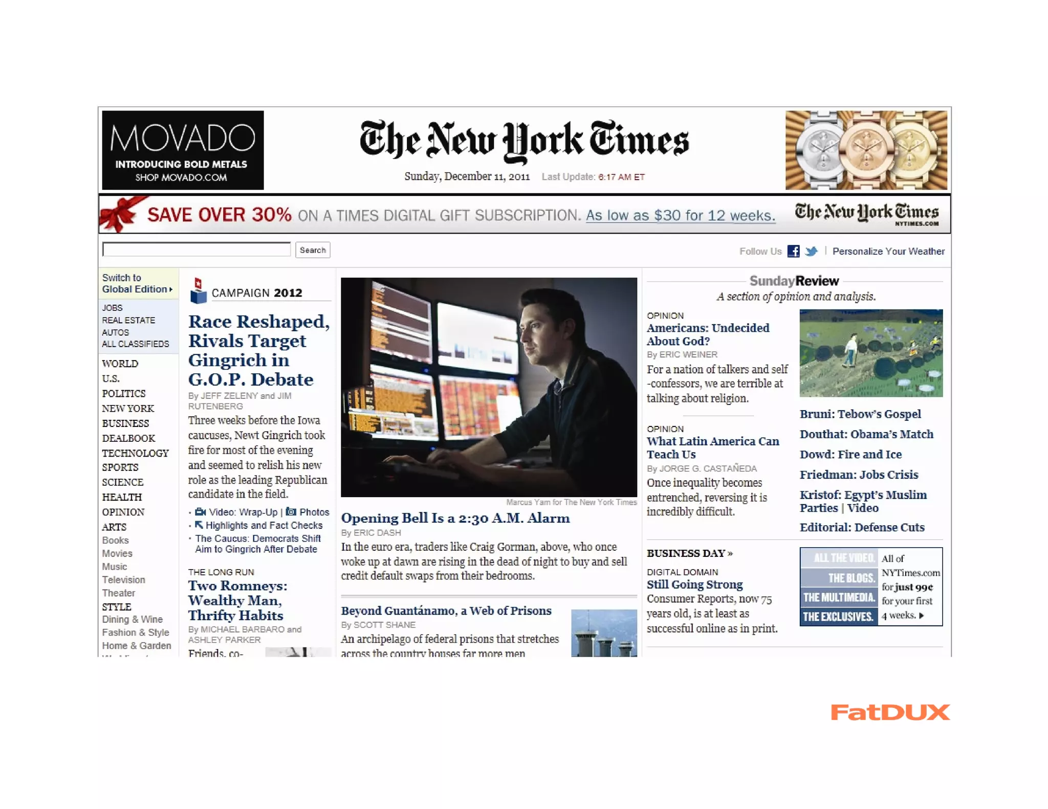 In his presentation at WebExpo 2012, Eric Reiss emphasizes the need for proactive design over mere responsiveness in user experience, advocating for a focus on predicting user needs rather than adhering strictly to technology or processes. He shares essential lessons learned, such as not becoming a slave to technology and breaking rules to embrace the unexpected. Reiss concludes by highlighting the importance of good design in winning customers and ultimately making an impact in the world.