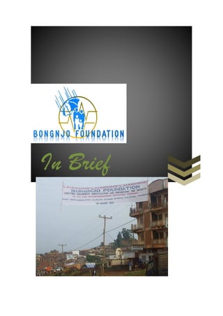 The Bongnjo foundation was founded in 2008 in Cameroon to promote human development and empower youth through community programs. It implements projects in the Ndu region focusing on youth football tournaments that provide HIV/AIDS education and screening to 15,000 people annually. The foundation also aims to increase civic engagement and support youth education with scholarships and entrepreneurship training to over 150 young people.