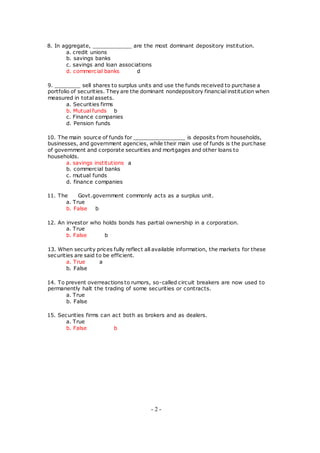 - Capital markets facilitate the flow of long-term funds with maturities over one year, while primary markets facilitate the issuance of new securities. Commercial banks are the most dominant depository institution.