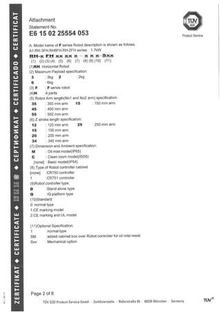This document provides safety precautions and instructions for operating industrial robots and controllers. It states that all work must be done by trained operators and work plans should be prepared. Emergency stop switches must be installed and work in progress must be indicated. Safety fences should be installed to prevent contact with operators. Inspections should be done before starting work and proper signage used for different work modes. Grounding and secure installation is required. Modifications are prohibited and proper cabling practices should be followed.