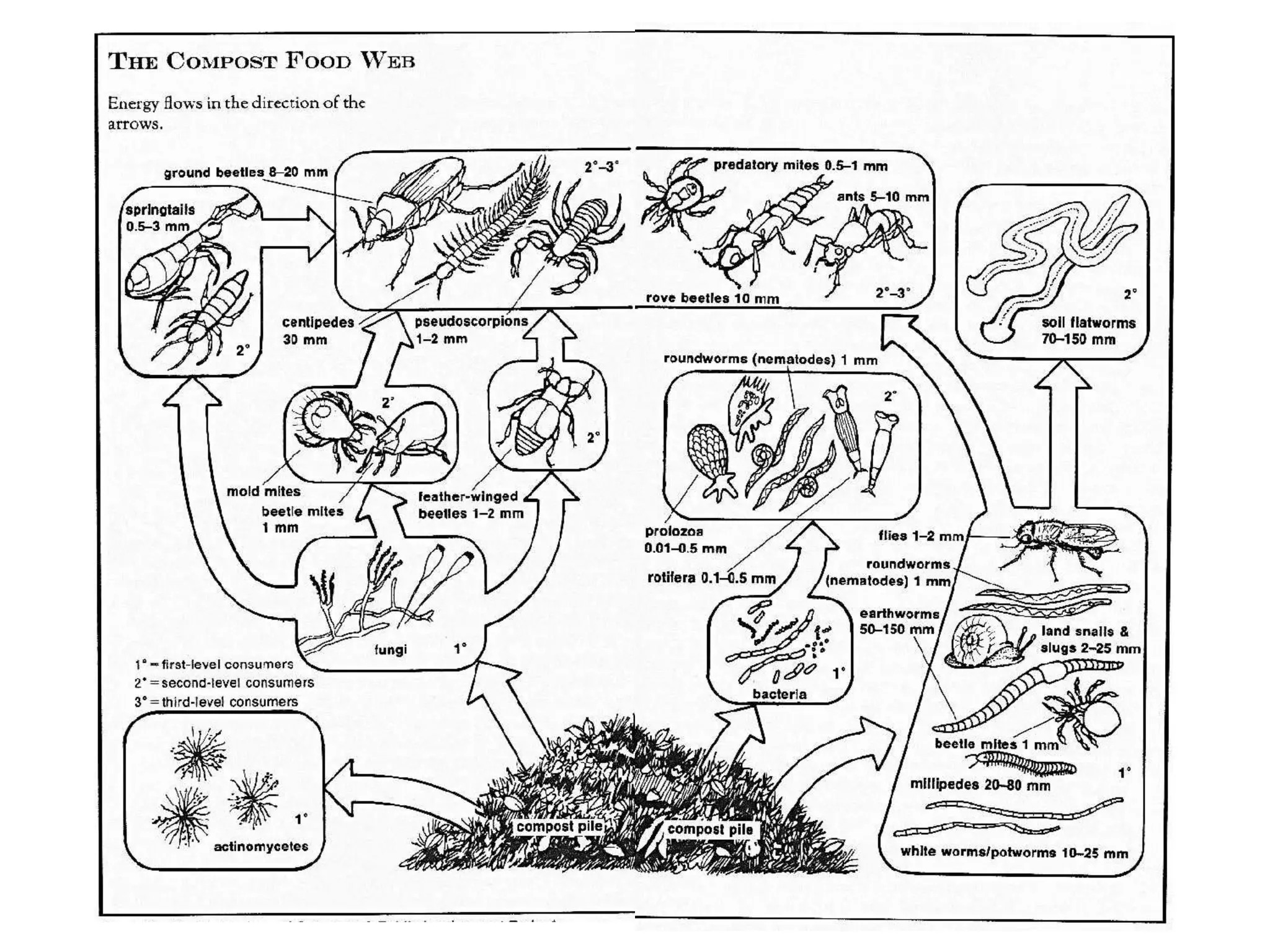 Details about soil microbes essential for compost, highlighting their populations and roles in soil health.
