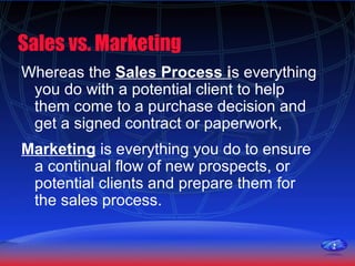 The document provides information on prospecting and developing a target market for a business. It discusses identifying prospects from a natural market of friends and contacts, using friendship farming to meet new people, employing a friendship borrowing system to get referrals, and utilizing professional prospecting tools from the company. Specific techniques are outlined, including developing a list of 100+ names, qualifying the top 25 prospects, using the FORM method to connect with strangers, and applying the STEAM questions to generate referrals. The importance of ongoing prospecting to sustain business growth is also emphasized.
