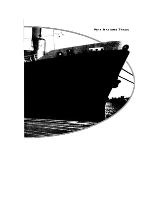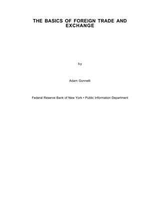 This document provides an elementary discussion of international trade and foreign exchange. It explains why countries trade, the benefits of specialization and comparative advantage, and factors that influence competitiveness. International trade allows countries to specialize in what they produce most efficiently and trade for other goods, increasing overall production and selection for consumers. While countries can benefit from trade even if they are not absolutely the most efficient, diversifying economies helps reduce vulnerability to market fluctuations.