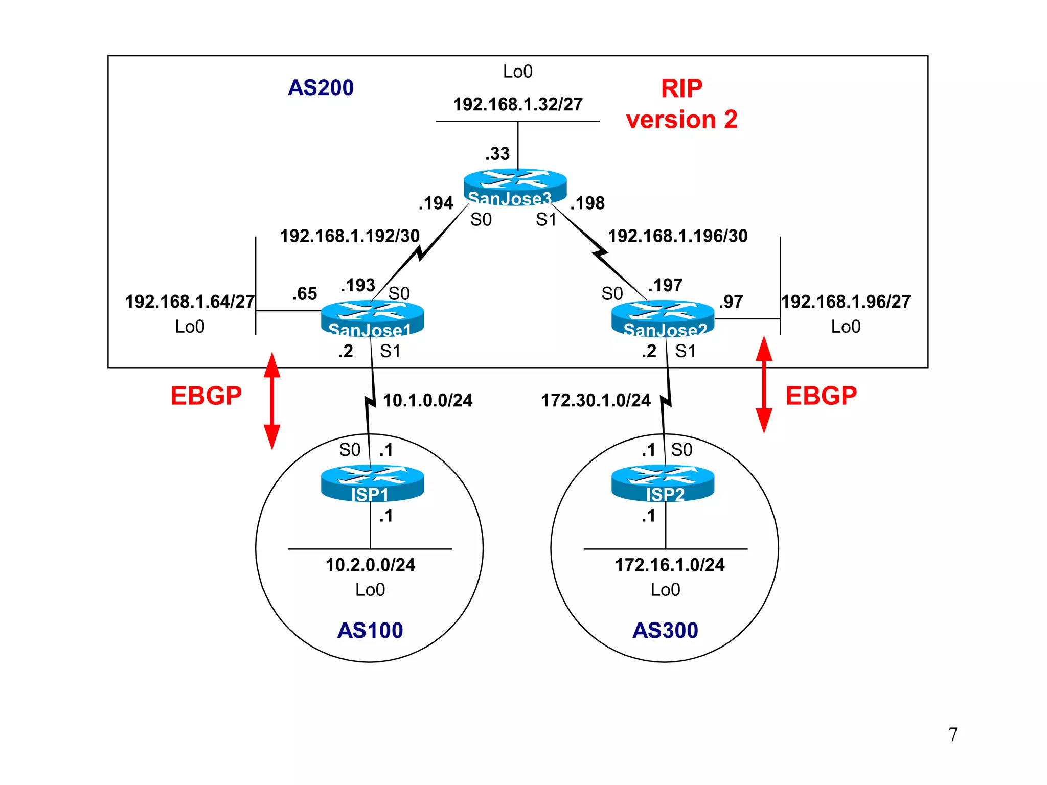 - In the initial configuration, the boundary routers can exchange routes learned from their respective ISPs via EBGP, but cannot exchange routes learned from the opposite ISP due to the lack of IBGP configuration.