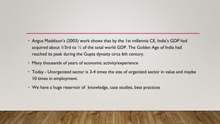 - India had a significant share (1/3 to 1/2) of the world's GDP in the 1st millennium CE during its Golden Age under the Gupta dynasty.