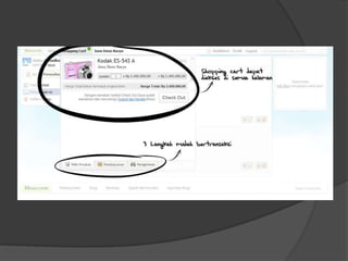 Dokumen ini membahas tentang kesulitan yang ada dalam e-commerce di Indonesia saat ini seperti produk yang rumit, antarmuka yang berbelit-belit, dan iklan yang mengganggu. Dokumen ini juga memperkenalkan Bhazz sebagai solusi e-commerce yang lebih interaktif dan sosial. Dokumen ini mengajak pembaca untuk mengunjungi situs web Bhazz untuk melihat penawarannya.