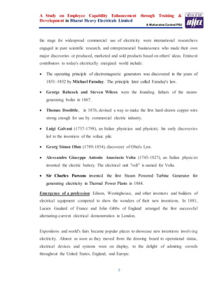 This document provides historical context on the development of the global and Indian electrical equipment industries. It discusses how early scientific discoveries led to advancements in electricity production and distribution over centuries. In India, the power sector has grown significantly since independence, with installed capacity increasing from 1,362 MW to 310 GW currently. The document also outlines the evolution of major electrical equipment companies worldwide and discusses how India opened up its power sector to private producers in the 1990s to meet growing demand.