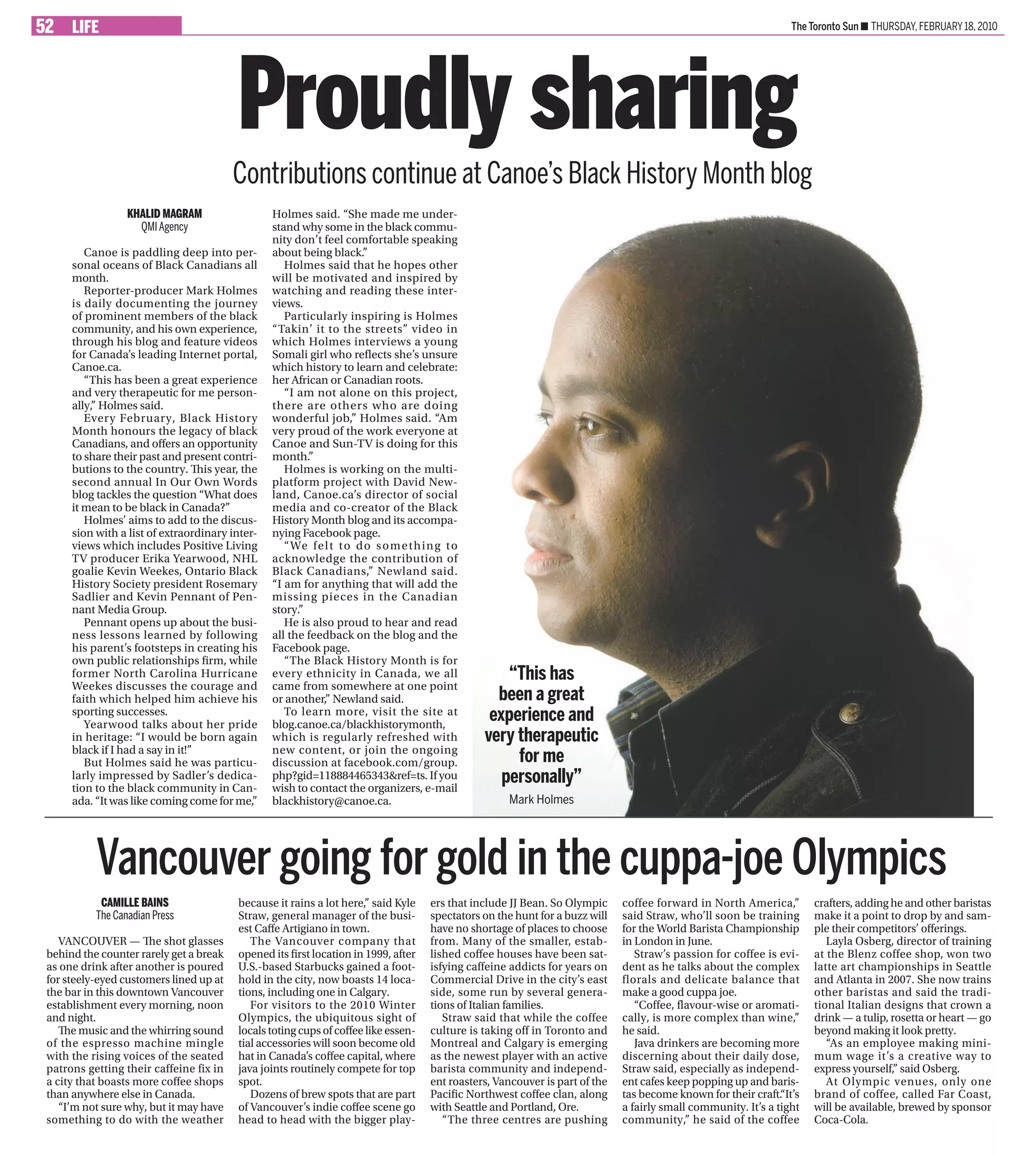 Mark Holmes is documenting Black Canadians' experiences and contributions through a blog and videos for Canoe.ca during Black History Month. This is a personal project for Holmes that allows him to reflect on his own experience. He has interviewed several prominent Black Canadians about what it means to be Black in Canada. Holmes found Rosemary Sadlier's dedication to the Black community in Canada particularly impressive and insightful. The blog aims to have an ongoing discussion and share more stories from the Black community.