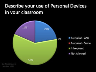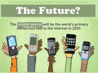 Cloud computing offers small and medium businesses opportunities to reduce costs, increase flexibility and scalability of their IT infrastructure. However, SMBs must consider security, reliability of service and control over customization when adopting cloud solutions. Tablets are becoming a popular mobile device for both personal and business use due to their lightweight portability and long battery life compared to netbooks or notebooks. While tablets excel for media consumption, netbooks and notebooks are still better suited for productivity tasks requiring physical keyboards and multi-tasking capabilities. Mobile devices are increasingly being used for learning and many educational apps exist to create, deliver and assess content on smartphones and tablets.
