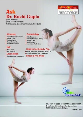 veggies which are available in this wonderful season are amazing for health….. So for next five days we are going to tell you all about these amazing strength foods… Today’s fruit is Pomegranate: Pomegranates: Chances are you’ve tasted pomegranates in their newly popu- lar juice form. And from a heart-health perspective, that’s probably a good thing. Pomegranate juice is rich in antioxidants (more so than other fruit juices)—just a cup daily might help to keep free radicals from oxidizing “bad” LDL cholesterol. 1. Pomegranates Are Loaded With Important Nutrients: Pomegranate is filled with Punicalagins are extremely powerful antioxidants found in the juice and peel of a pomegranate. They are so powerful that pomegranate juice has been found to have three times the antioxidant activity of red wine and green tea. 2. Pomegranate Has Impressive Anti- Inflammatory Effects: The Punicalagins in pomegranate juice have been shown to reduce inflamma- tion, one of the leading drivers of many killer diseases. 3. Pomegranate May Help Fight Prostate Cancer: There is preliminary evidence that pomegranate juice can be useful in men with prostate cancer, potentially inhibiting cancer growth and lowering the risk of death. 4. Pomegranate May Lower Blood Pressure and Lowers the risk of Heart Disease: Regular intake of pomegranate juice has been shown to lower blood pressure levels in as little as 2 weeks. Several human studies have shown that pome- granate can have benefits against heart disease. It i m p r o v e s the choles- terol profile and protects LDL cho- lesterol from oxidative damage. 38 ÚUæCþUèØçãU‹Îè׿çâ·¤Âç˜æ·¤æÁÙßÚUèUU w®v{ ÕðÅUè Õ¿æ¥æð, ÕðÅUè ÂɸUæ¥æð BEUTY TIPS ÙæðÅUÑ ¥çŠæ·¤ ÁæÙ·¤æÚUè °ß´ ©Uç¿Ì âéÛææß ·ð¤ çܰ çâÅUè âð´ÅUÚU çSÍÌ çÚUßæ§UÅUÜ ×´˜ææ ÂÚU â´Â·ü¤ ·¤ÚU â·¤Ìð ãñ´UÐ â·ü¤ âê˜æ ®|zv-y®yw®®x Winter is still around and our skin is going dry by the day. We all need to take very good care of our skin in the winter and the dry skin can be dam- aged very easily. Here is what you can do to take great care of your skin during this winter: For normal to dry skin:- 1)Use a cleanser contain- ing aloevera, cactus and lemon. Aloevera has the power to restore moisture and has potent healing properties too. 2)Keep the skin moistur- ized, always 3)Use a sunscreen, People like to enjoy the sun during winter but lit- tle do they know that exposure to the sun can hasten ageing. 4)Skin nourishment, apply a skin life anti-age- ing cream and massage it on the skin with a little water. Use outward and slightly upward strokes. Ensure that the cream is rich in Vitamins A and E There is no better time than now to start taking care of your skin! Ruchi Rai Thakur NATURAL HEALTH TIPS