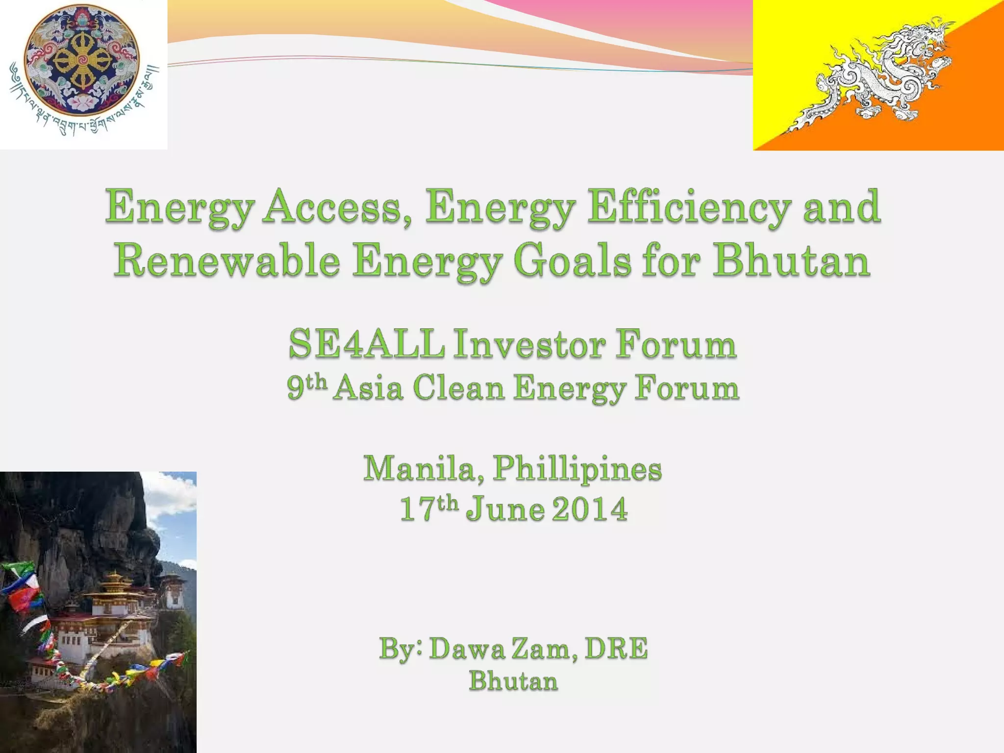 This document summarizes Bhutan's energy sector, including its goals and initiatives to achieve universal energy access, energy efficiency, and increased use of renewable energy as part of its commitments under SE4ALL. It outlines Bhutan's institutional arrangements and existing energy policies, then discusses the country's progress toward each of the three SE4ALL goals. Challenges are presented, such as a lack of legal frameworks and institutional capacity for renewable energy and energy efficiency. Investment opportunities are mentioned, primarily in ongoing studies and hydropower projects planned for implementation under public-private partnerships.