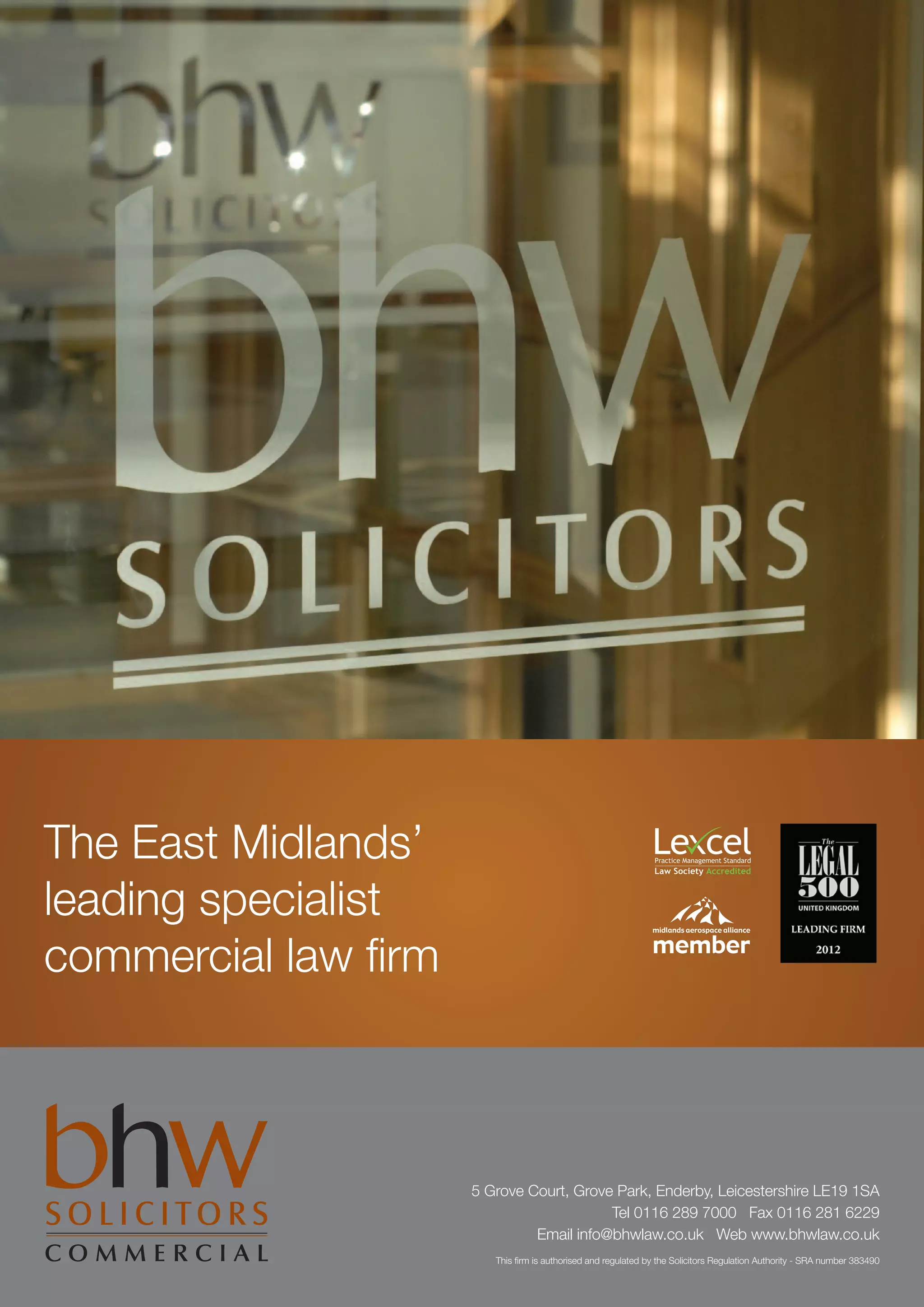 This document summarizes the services provided by BHW, a UK law firm specializing in commercial law. BHW provides a full range of commercial legal services, including corporate transactions, commercial agreements, commercial property, and specialized services for industries like aerospace and schools converting to academies. The firm aims to deliver the highest quality legal and strategic advice to businesses of all sizes through a cooperative approach.