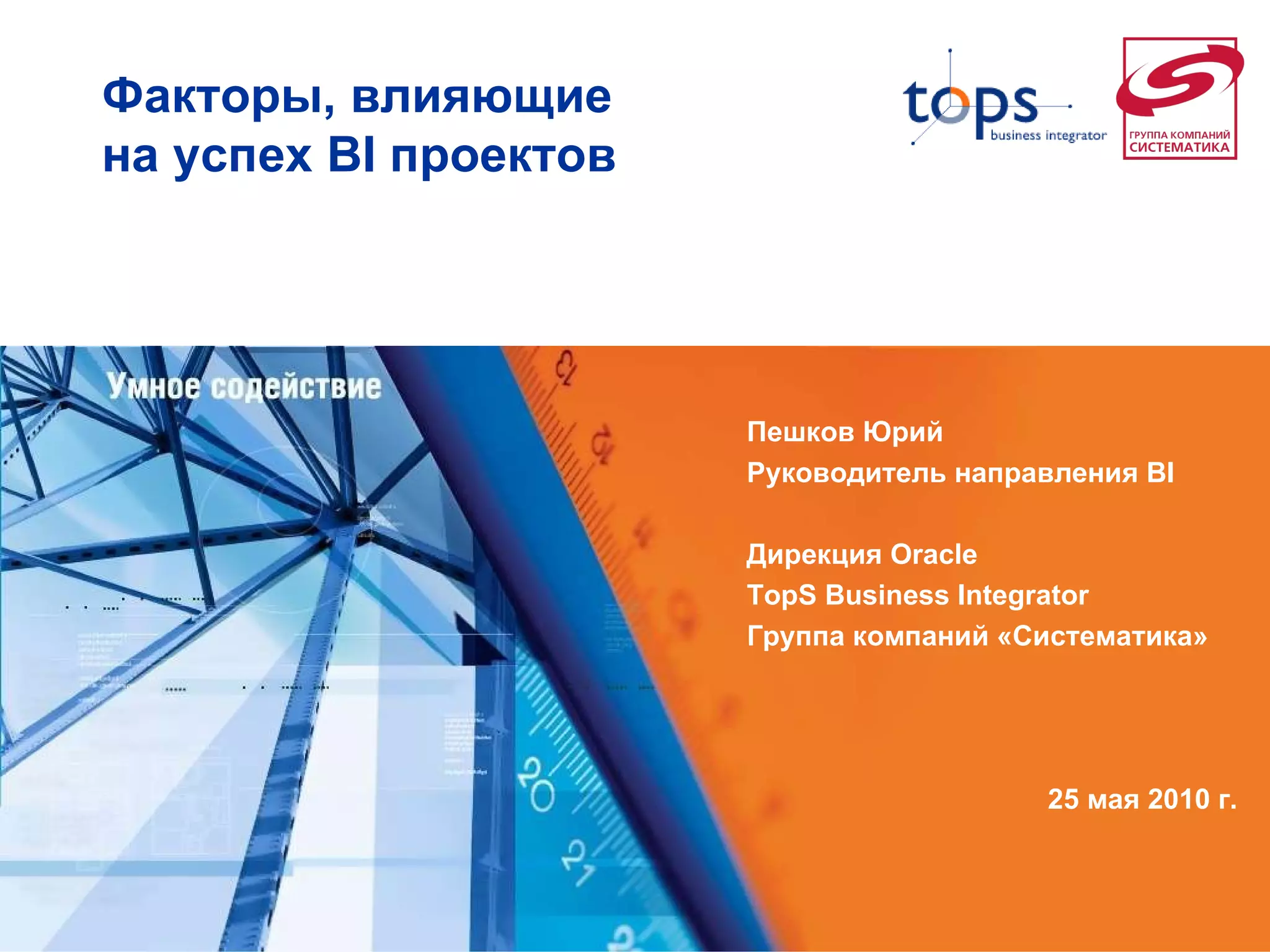 Документ описывает ключевые факторы, влияющие на успех проектов бизнес-аналитики (BI), включая методологии, технологии и согласованность стратегий бизнеса и BI. Основные проблемы включают отсутствие связи между бизнес-пользователями и IT-службами, а также необходимость обучения бизнес-аналитиков. Успех проектов зависит от мотивации персонала и актуальности аналитических данных и отчетов.