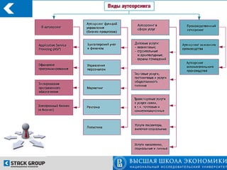 Документ представляет собой лекцию, посвященную бизнес-информатике, с акцентом на аутсорсинг информационных технологий, облачные вычисления и дата-центры. Он объясняет концепцию аутсорсинга, его виды и преимущества, а также описывает ключевые тренды в области IT-аутсорсинга. Основное внимание уделяется эффективному управлению бизнес-процессами через внедрение аутсорсинга как стратегии для повышения конкурентоспособности организации.